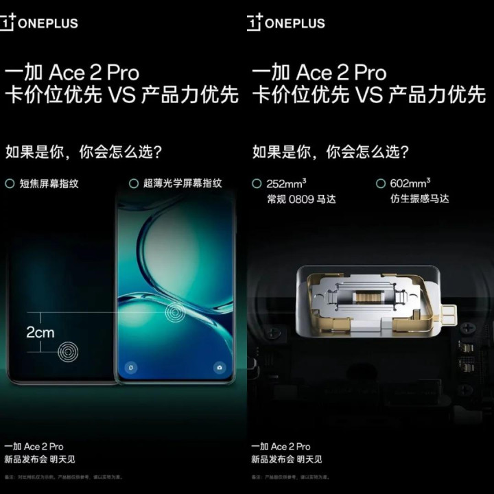 再比如马达,当年一加发布一加ACE 2Pro的时候,可是专门把超大腔体的马达作为核心卖点的,并且还专门嘲讽了一下0809马达(都标注出来了)